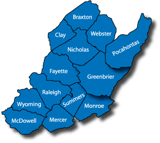 Counties Covered: Braxton, Clay, Fayette, Greenbrier, McDowell, Mercer, Monroe, Nicholas, Pocahontas, Raleigh, Summers, Webster, Wyoming..